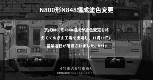 京成N800形N828編成が塗色変更を終えてくぬぎ山工場を出場し、9月9日に営業運転が確認されました。
