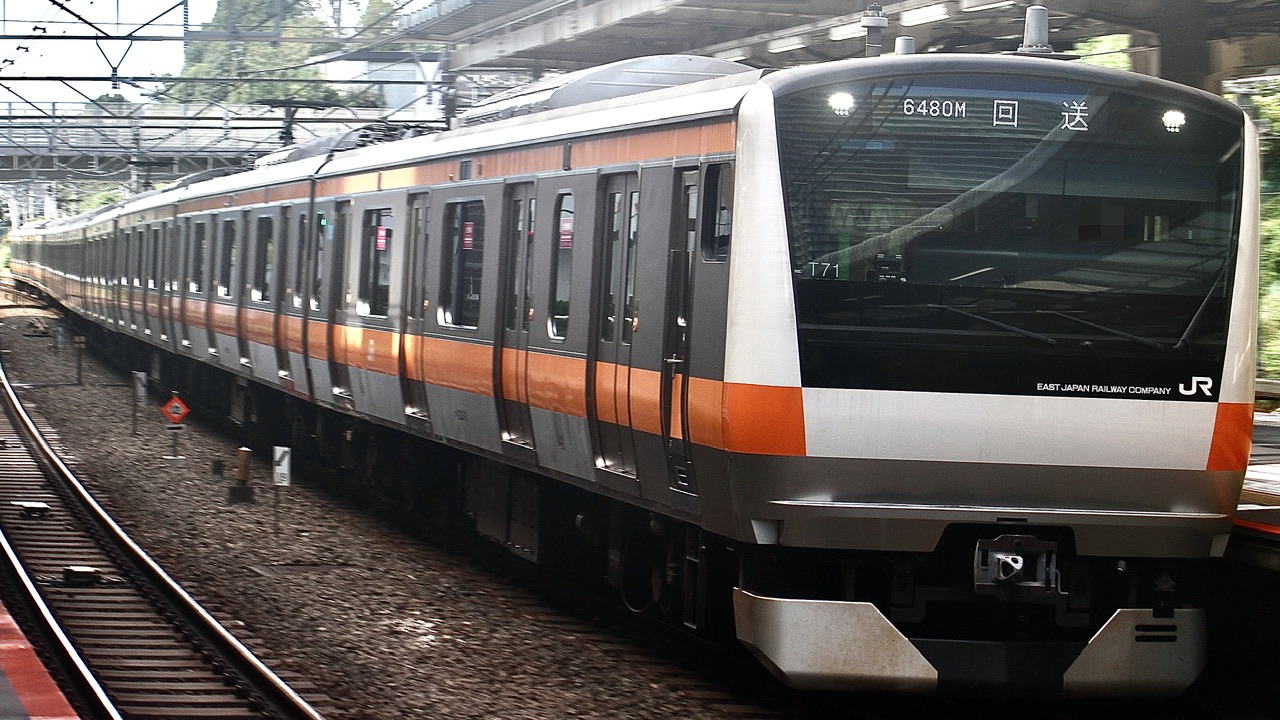 10/2、中央快速線E233系トタT71編成が東京総合車両センターへ向けて回送されています。同所への入場回送と思われます。ドアステッカー等の車内広告が全て無くなっていることから、今後の動向が気になるところです。