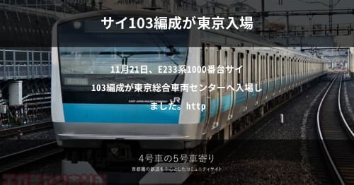 11月21日、E233系1000番台サイ103編成が東京総合車両センターへ入場しました。