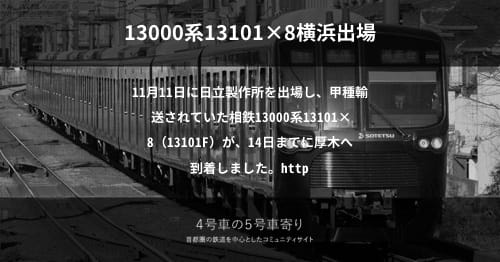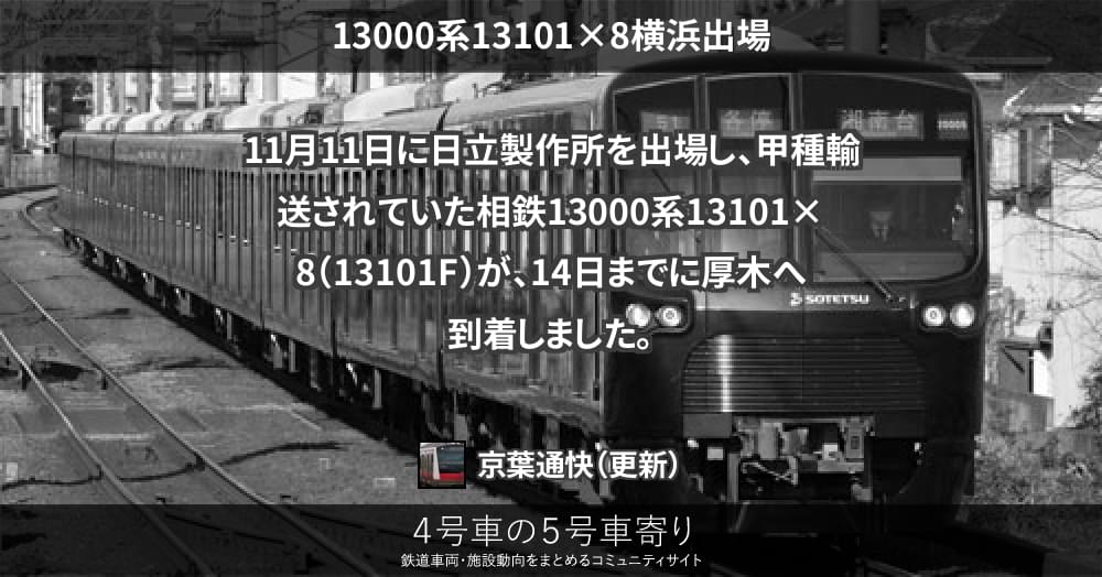 11月11日に日立製作所を出場し、甲種輸送されていた相鉄13000系13101×8(13101F)が、14日までに厚木へ到着しました。