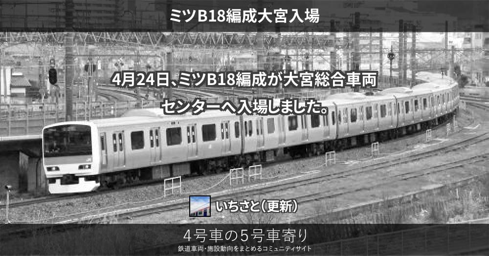 E231系 ページ目次 ミツB18編成大宮入場 更新コンテンツ サイト投稿写真 Twitterの写真 2018/04/24 ミツB18編成大宮入場 4月24日、ミツB18編成が大宮総合車両センターへ入場しました。 更新コンテンツ 404 Not Found 404 Not Found 上記コンテンツ傘下のページも含みます。 サイト投稿写真 投稿画像がありません。E231系グループのアップローダーへ投稿頂いた写真は、こちらでご紹介致します。 Twitterの写真 ミツB18編成大宮入場