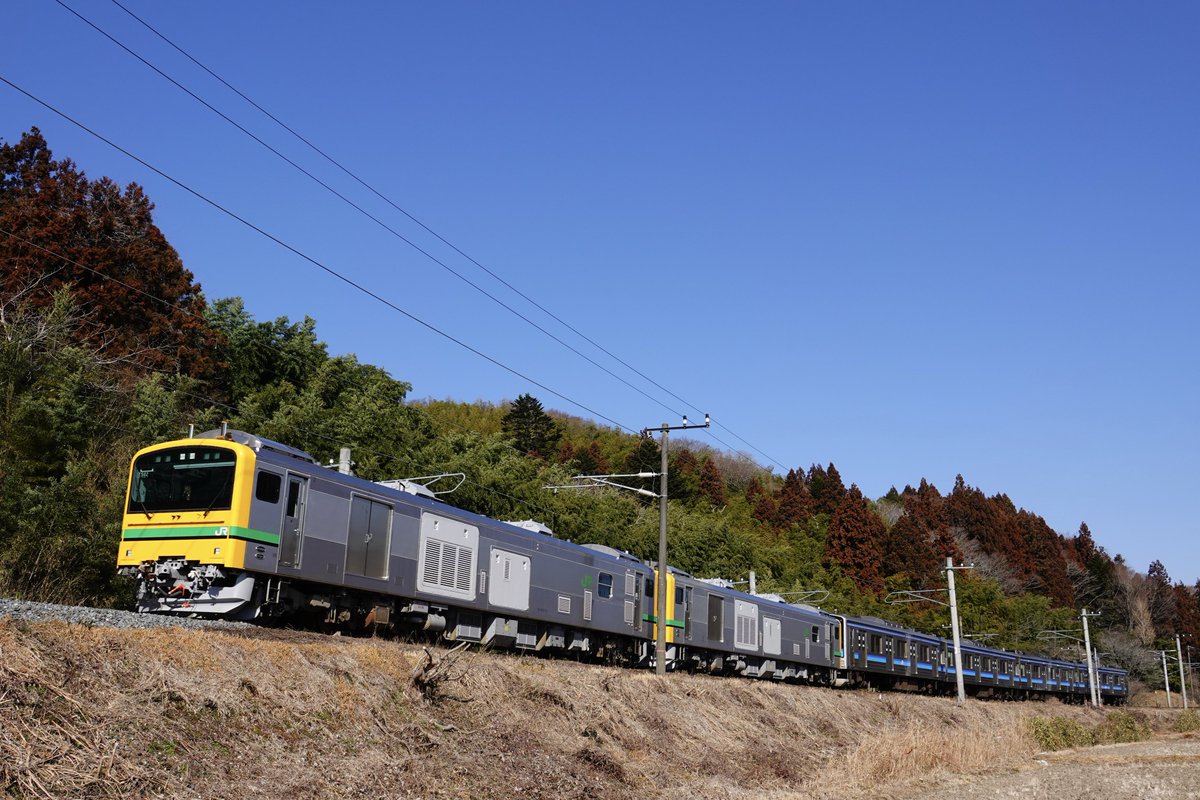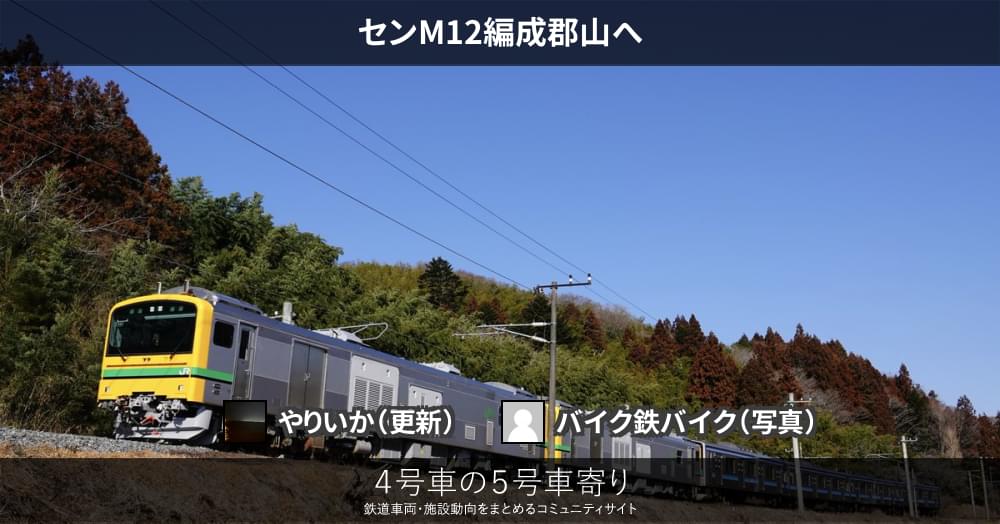 本日、205系3100番台センM12編成がGV-E197系クンTS02編成の牽引で郡山方面へ配給輸送されています。郡山総合車両センターへ廃車のため入場するものとみられます。同編成は、2/19に石巻へ臨時回送されていました。