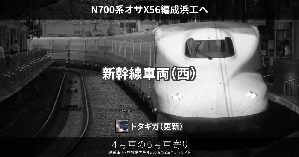 3月9日、N700系(スモールA)オサX56編成が浜松工場へ回送されました。