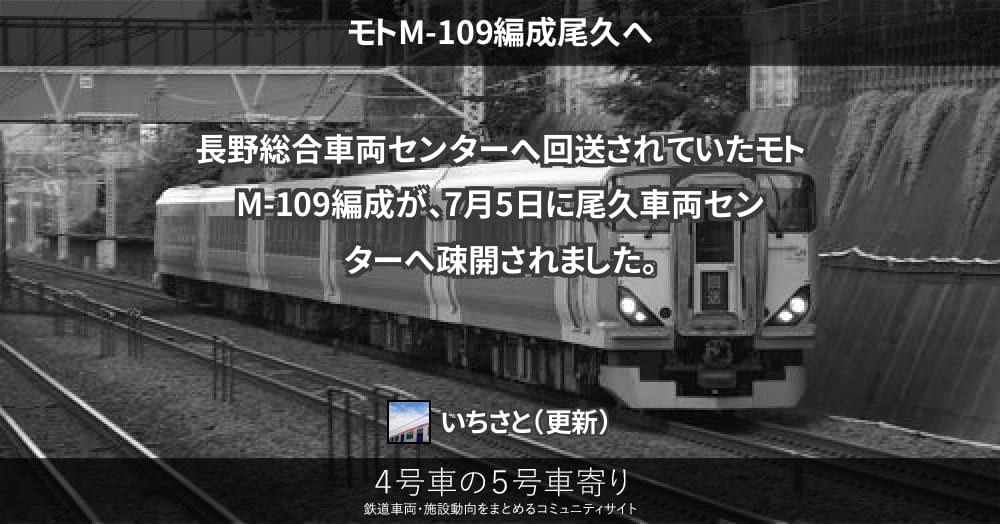 長野総合車両センターへ回送されていたモトM-109編成が、7月5日に尾久車両センターへ疎開されました。