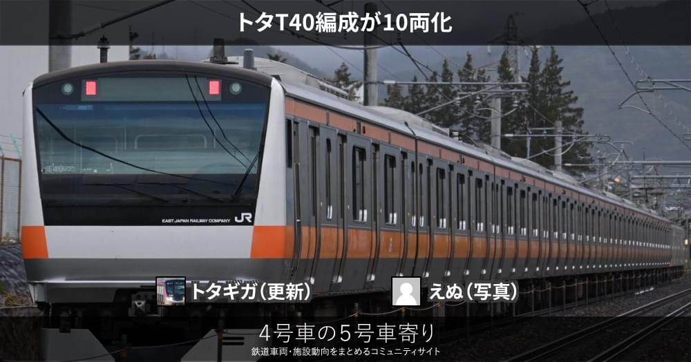 本日、中央快速線E233系0番台トタT40編成がグリーン車を連結しない10両のままE493系オク01編成の牽引による配給輸送で長野総合車両センター(NN)を出場しました。同編成は別編成が長野で普通車の機器更新を実施する際、その編成のグリーン...