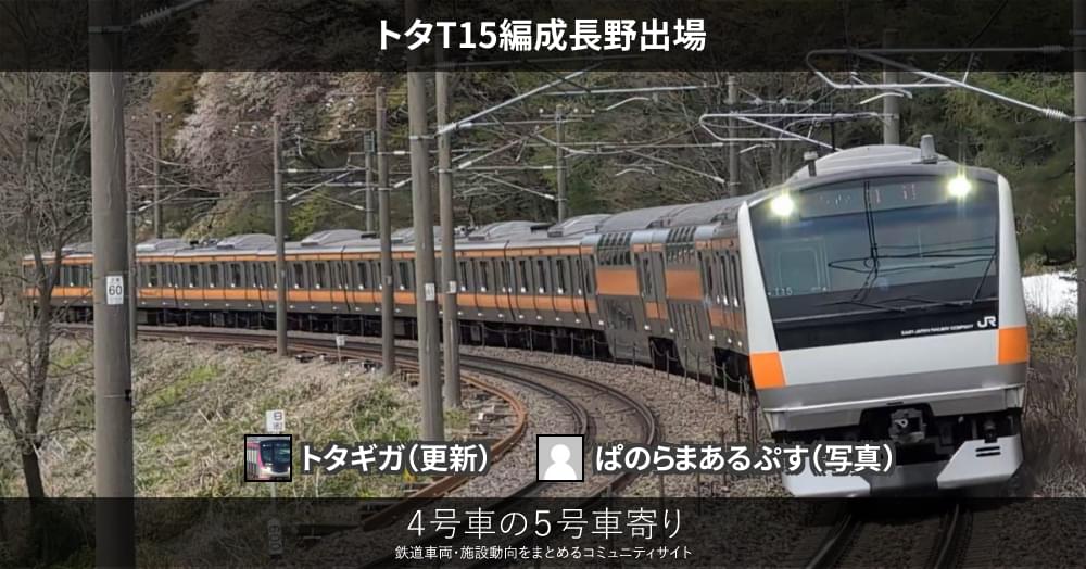 4/24、E233系トタT15編成が長野総合車両センターを出場(NN出場)し、豊田方面へ自走で回送されてます。前例同様、2号車と10号車の機器更新が行われてます。