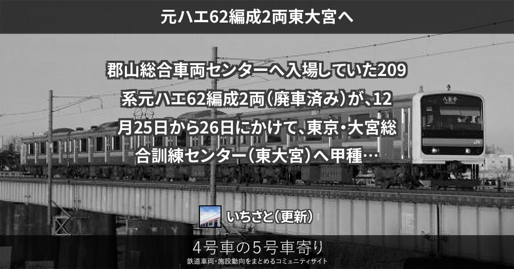 元ハエ62編成2両東大宮へ