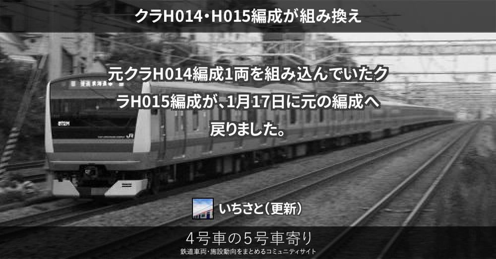 E233系元クラH014編成1両を組み込んでいたクラH015編成が、1月17日に元の編成へ戻りました。