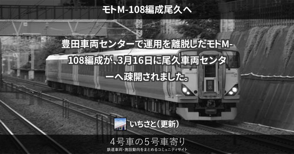 豊田車両センターで運用を離脱したモトM-108編成が、3月16日に尾久車両センターへ疎開されました。