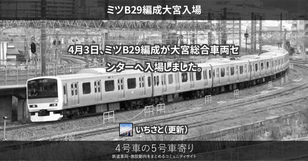 E231系 ページ目次 ミツB29編成大宮入場 更新コンテンツ サイト投稿写真 Twitterの写真 2019/04/03 ミツB29編成大宮入場 4月3日、ミツB29編成が大宮総合車両センターへ入場しました。 更新コンテンツ 404 Not Found 404 Not Found 上記コンテンツ傘下のページも含みます。 サイト投稿写真 投稿画像がありません。E231系グループのアップローダーへ投稿頂いた写真は、こちらでご紹介致します。 Twitterの写真 ミツB29編成大宮入場