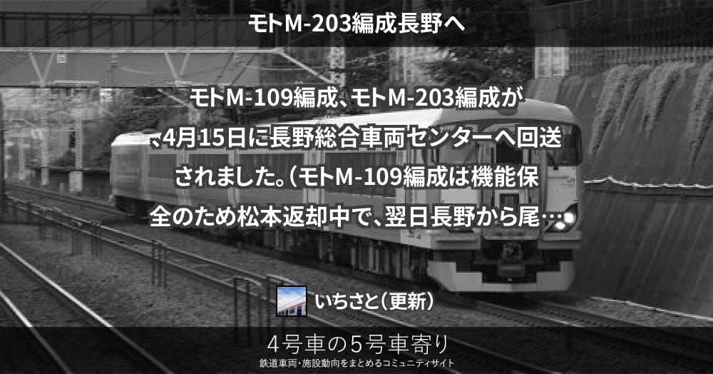 モトM-109編成、モトM-203編成が、4月15日に長野総合車両センターへ回送されました。
