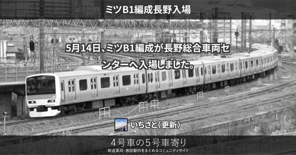 5月14日、ミツB1編成が長野総合車両センターへ入場しました。