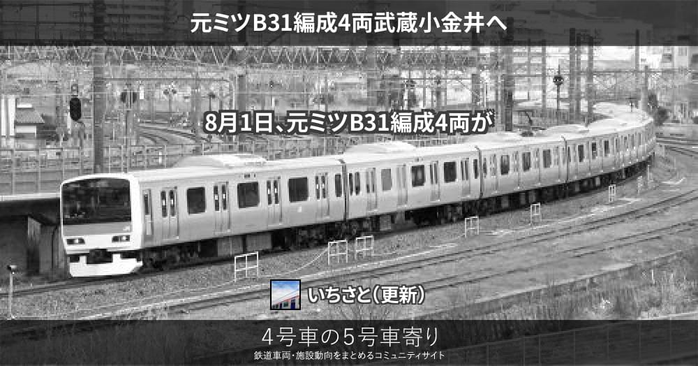 E231系 ページ目次 元ミツB31編成4両武蔵小金井へ 更新コンテンツ サイト投稿写真 Twitterの写真 2019/08/012019/08/02 元ミツB31編成4両武蔵小金井へ 8月1日、元ミツB31編成4両が三鷹長野総合車両センターから豊田車両センター武蔵小金井派出へ回送されました。 更新コンテンツ 404 Not Found 上記コンテンツ傘下のページも含みます。 サイト投稿写真 投稿画像がありません。E231系グループのアップローダーへ投稿頂いた写真は、こちらでご紹介致します。 Twitterの写真 元ミツB31編成4両武蔵小金井へ