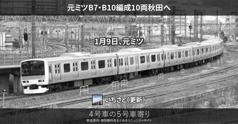1月9日、元ミツB8B7編成2両、元ミツB10編成8両が盛岡車両センター青森派出(JRTM青森改造センター)を出場し、秋田総合車両センターへ配給されました。