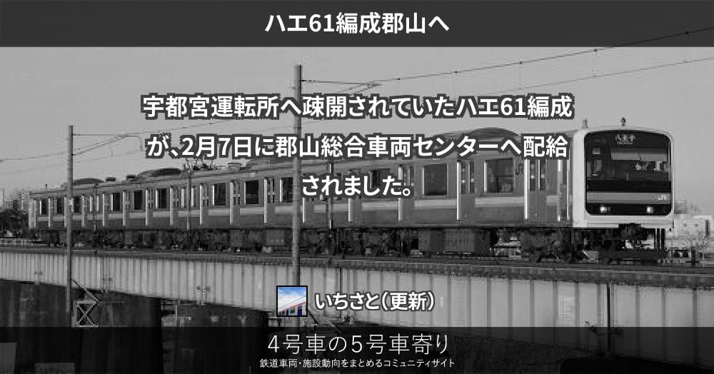 宇都宮運転所へ疎開されていたハエ61編成が、2月7日に郡山総合車両センターへ配給されました。