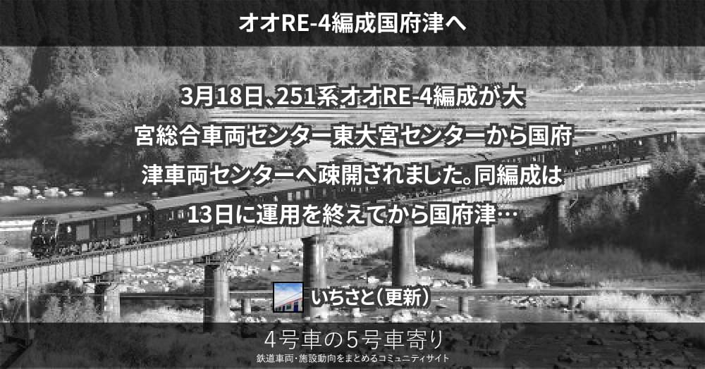 3月18日、251系オオRE-4編成が大宮総合車両センター東大宮センターから国府津車両センターへ疎開されました。