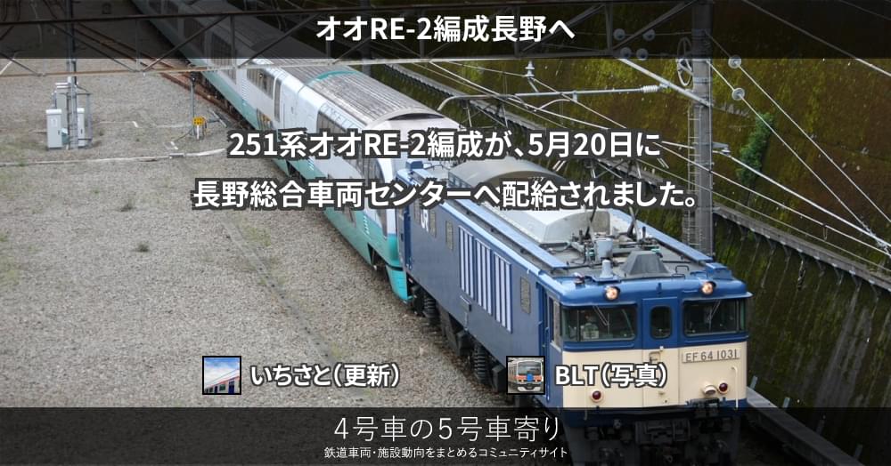 251系オオRE-2編成が、5月20日に長野総合車両センターへ配給されました。