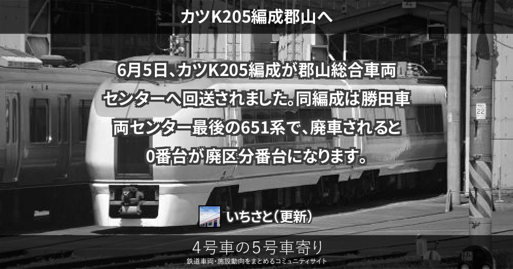 6月5日、カツK205編成が郡山総合車両センターへ回送されました。
