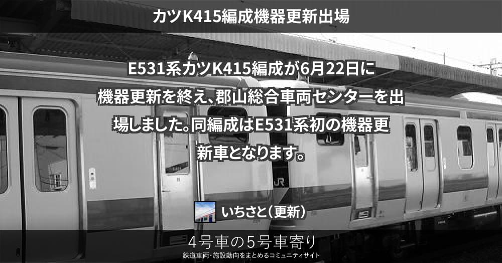 E531系E531系カツK415編成が6月22日に機器更新を終え、郡山総合車両センターを出場しました。