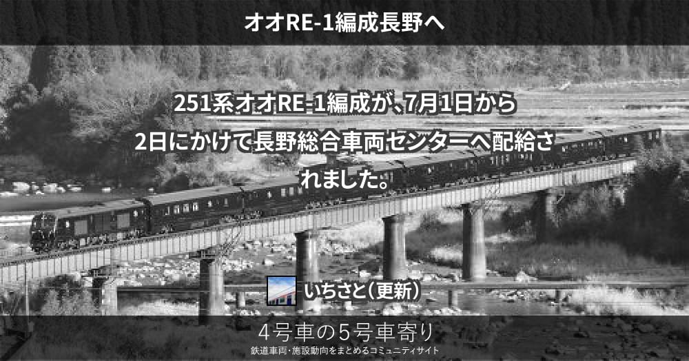 251系251系オオRE-1編成が、7月1日から2日にかけて長野総合車両センターへ配給されました。