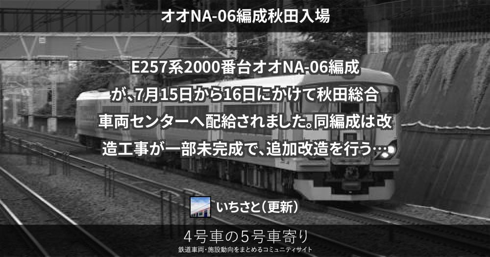 E257系E257系2000番台オオNA-06編成が、7月15日から16日にかけて秋田総合車両センターへ配給されました。