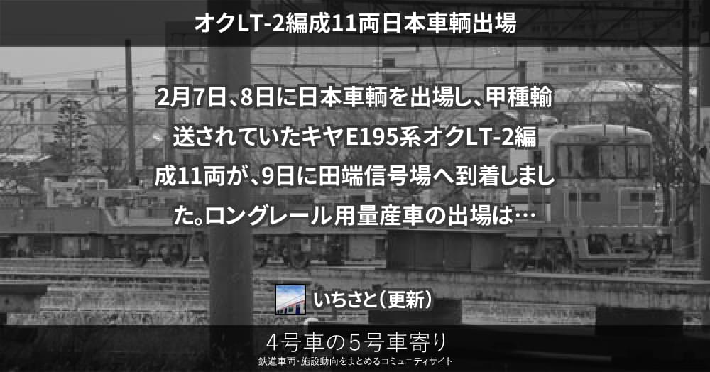 2月7日、8日に日本車輌を出場し、甲種輸送されていたキヤE195系オクLT-2編成11両が、9日に田端信号場へ到着しました。