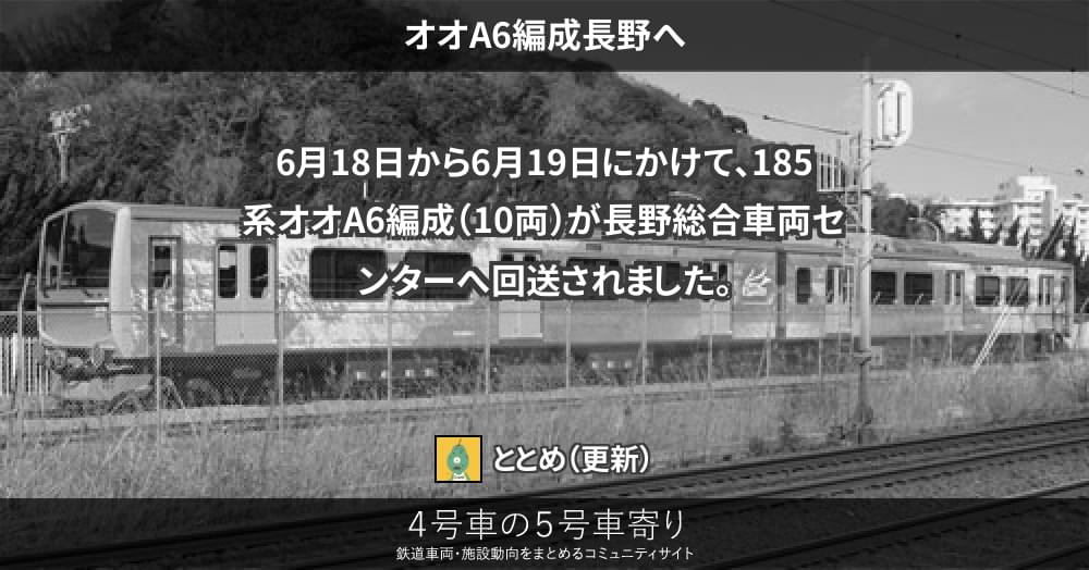 JRの車両その他(東)6月18日から6月19日にかけて、185系オオA6編成(10両)が長野総合車両センターへ回送されました。