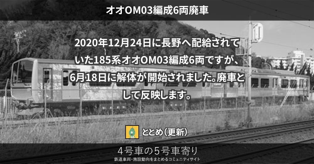 2020年12月24日に長野へ配給されていた185系オオOM03編成6両ですが、6月18日に解体が開始されました。廃車として反映します。