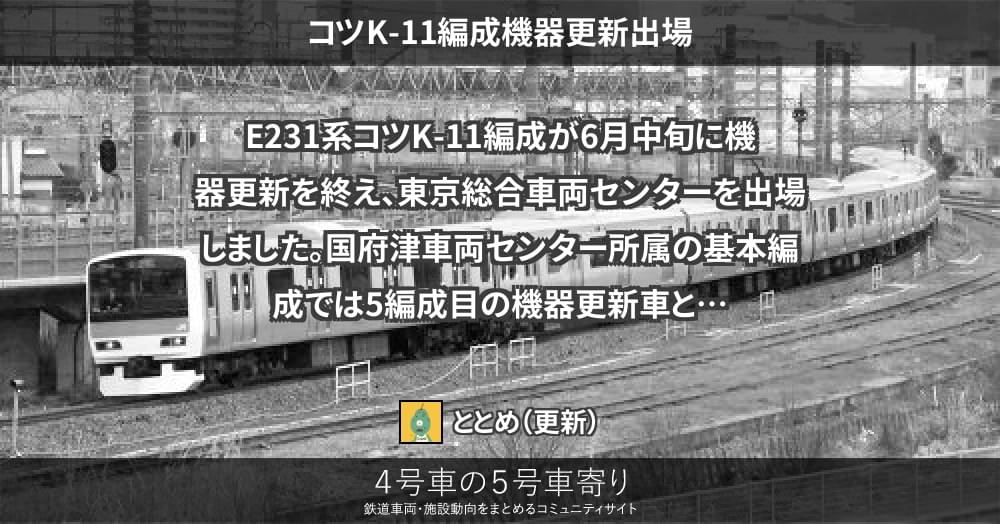 E231系コツK-11編成が6月中旬に機器更新を終え、東京総合車両センターを出場しました。