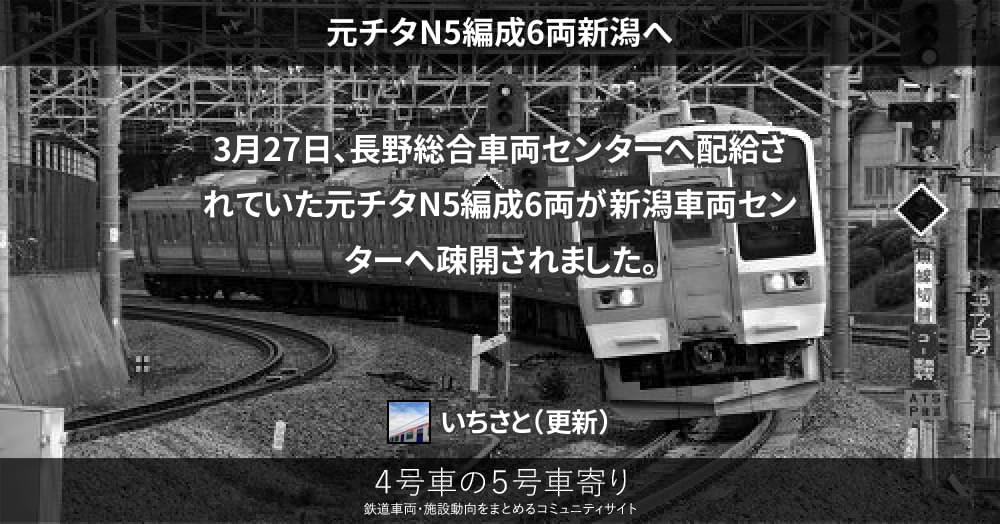3月27日、長野総合車両センターへ配給されていた元チタN5編成6両が新潟車両センターへ疎開されました。
