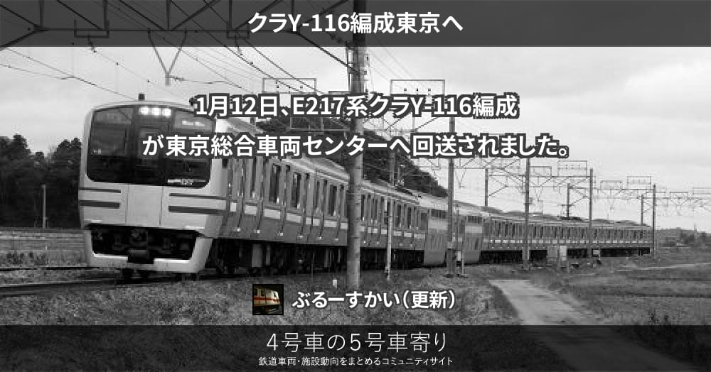 1月12日、E217系クラY-116編成が東京総合車両センターへ回送されました。