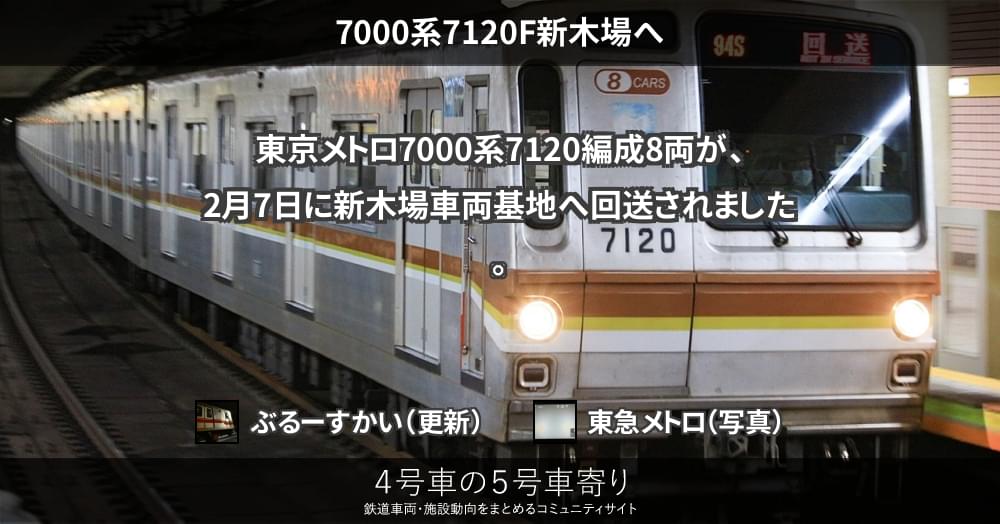 東京メトロ7000系7120編成8両が、2月7日に新木場車両基地へ回送されました。