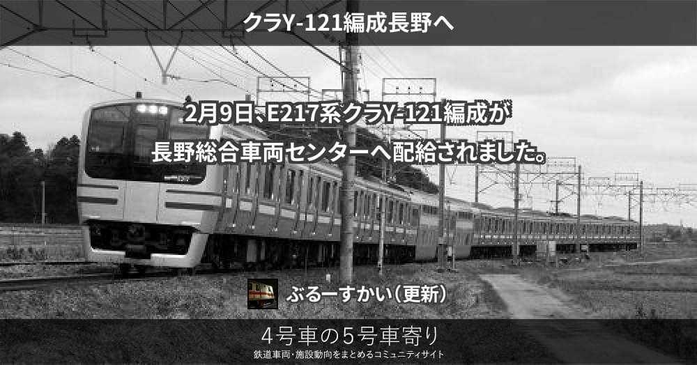 2月9日、E217系クラY-121編成が長野総合車両センターへ配給されました。