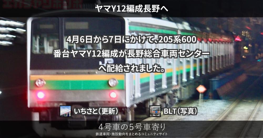 4月6日から7日にかけて、205系600番台ヤマY12編成が長野総合車両センターへ配給されました。