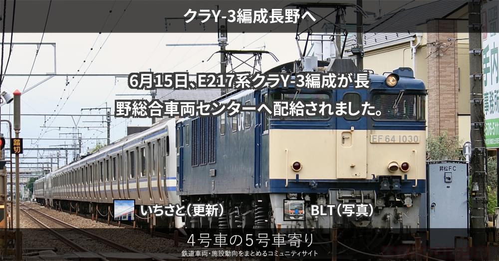 6月15日、E217系クラY-3編成が長野総合車両センターへ配給されました。