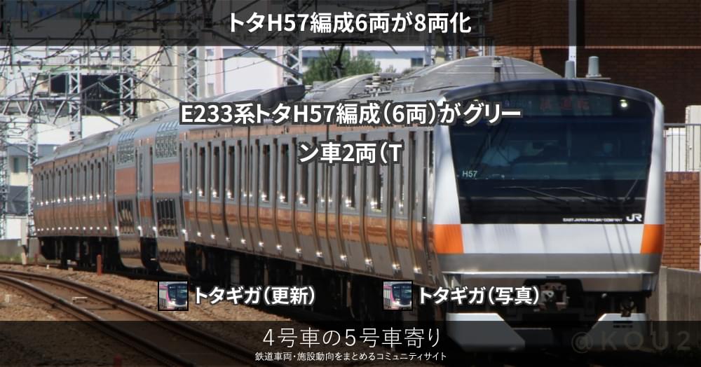 7/27、E233系トタH57編成8両の試運転が目撃されています。公式試運転と推測され、グリーン車組込後としては初の本線走行になります。