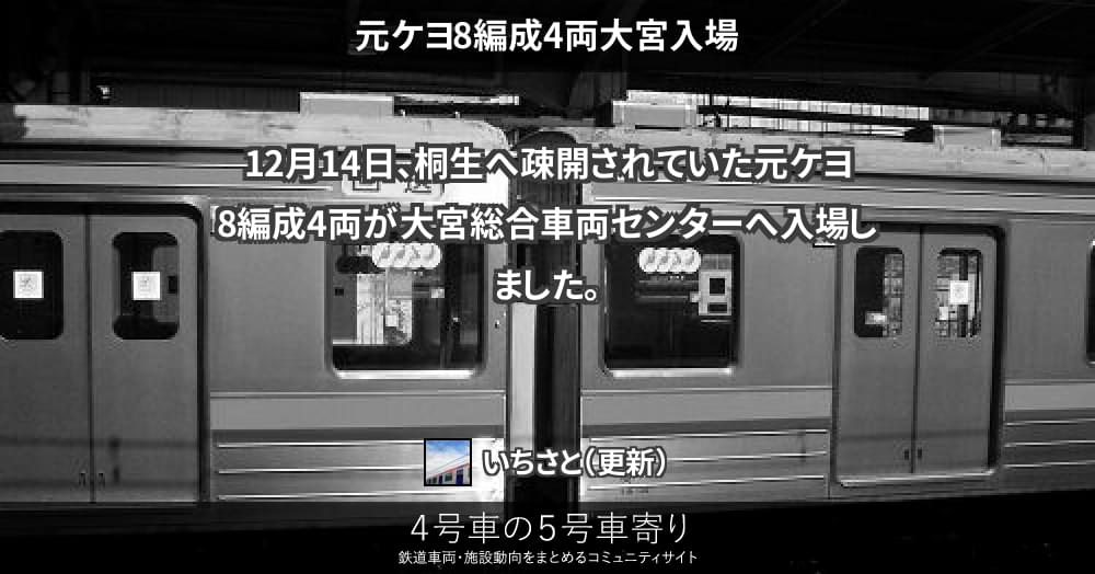 12月14日、桐生へ疎開されていた元ケヨ8編成4両が大宮総合車両センターへ入場しました。
