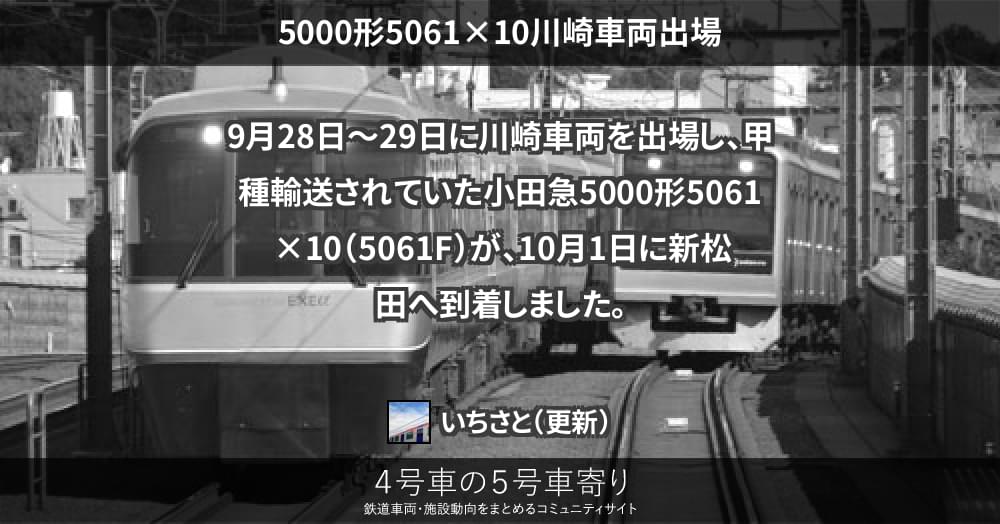 9月28日~29日に川崎車両を出場し、甲種輸送されていた小田急5000形5061×10(5061F)が、10月1日に新松田へ到着しました。