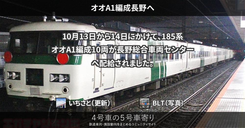10月13日から14日にかけて、185系オオA1編成10両が長野総合車両センターへ配給されました。