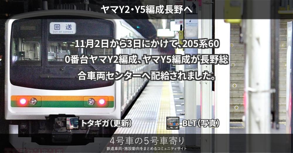 11月2日から3日にかけて、205系600番台ヤマY2編成、ヤマY5編成が長野総合車両センターへ配給されました。