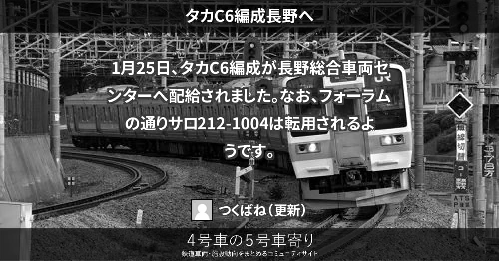 1月25日、タカC6編成が長野総合車両センターへ配給されました。なお、フォーラムの通りサロ212-1004は転用されるようです。
