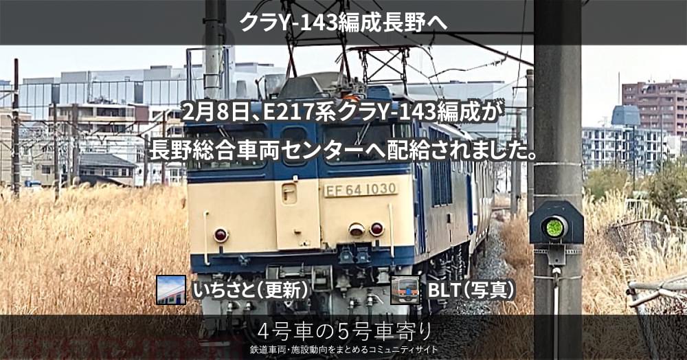 2月8日、E217系クラY-143編成が長野総合車両センターへ配給されました。