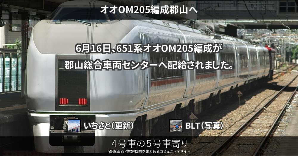 6月16日、651系オオOM205編成が郡山総合車両センターへ配給されました。