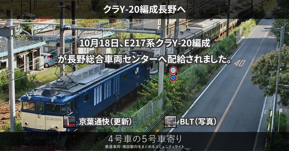 10月18日、E217系クラY-20編成が長野総合車両センターへ配給されました。