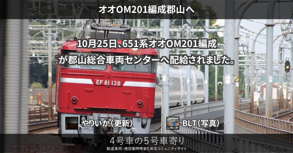 10月25日、651系オオOM201編成が郡山総合車両センターへ配給されました。