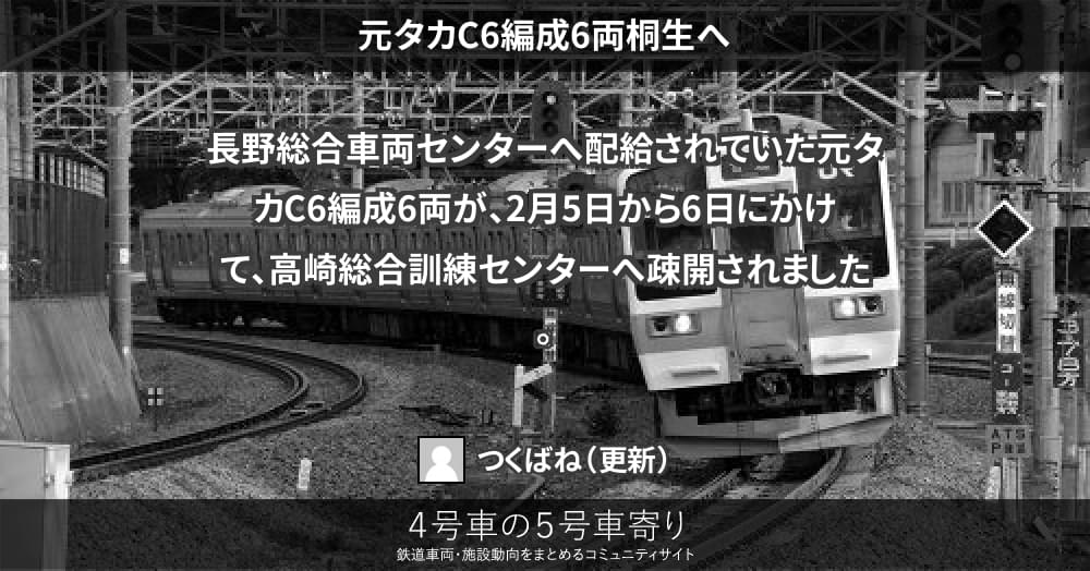 長野総合車両センターへ配給されていた元タカC6編成6両が、2月5日から6日にかけて、高崎総合訓練センターへ疎開されました。