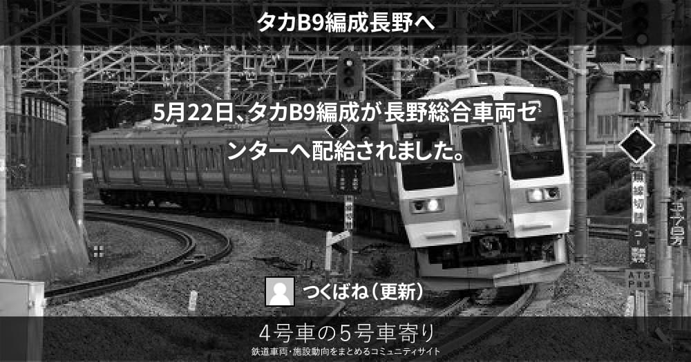 211系(東) ページ目次 タカB9編成長野へ 更新コンテンツ サイト投稿写真 2013/05/22 タカB9編成長野へ 5月22日、タカB9編成が長野総合車両センターへ配給されました。 更新コンテンツ 211系転属の記録首都圏から地方へ、211系の疎開や配給、転属の動きを詳しく迅速にまとめています。 上記コンテンツ傘下のページも含みます。 サイト投稿写真 投稿画像がありません。211系(東)グループのアップローダーへ投稿頂いた写真は、こちらでご紹介致します。