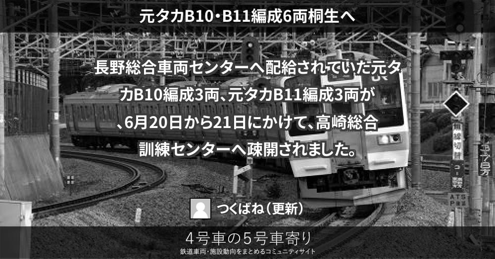 長野総合車両センターへ配給されていた元タカB10編成3両、元タカB11編成3両が、6月20日から21日にかけて、高崎総合訓練センターへ疎開されました。