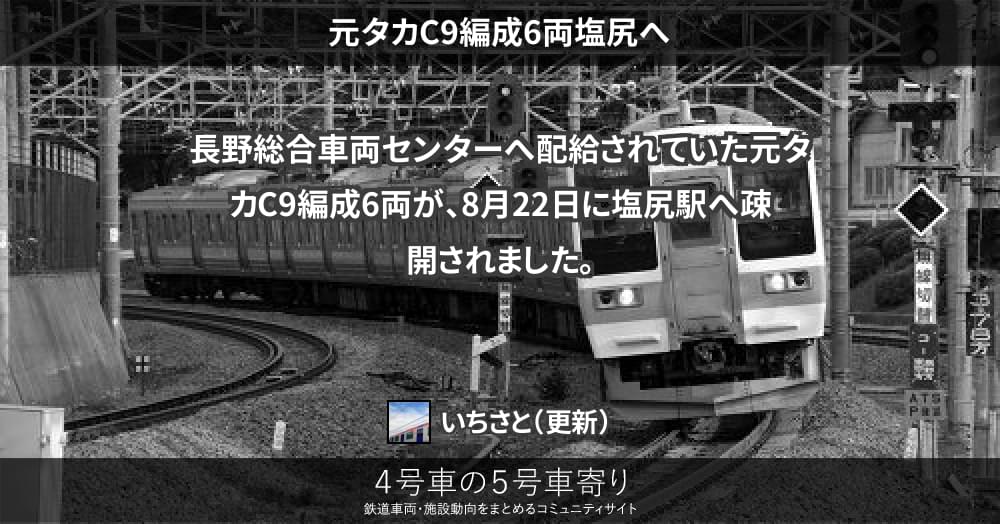 長野総合車両センターへ配給されていた元タカC9編成6両が、8月22日に塩尻駅へ疎開されました。