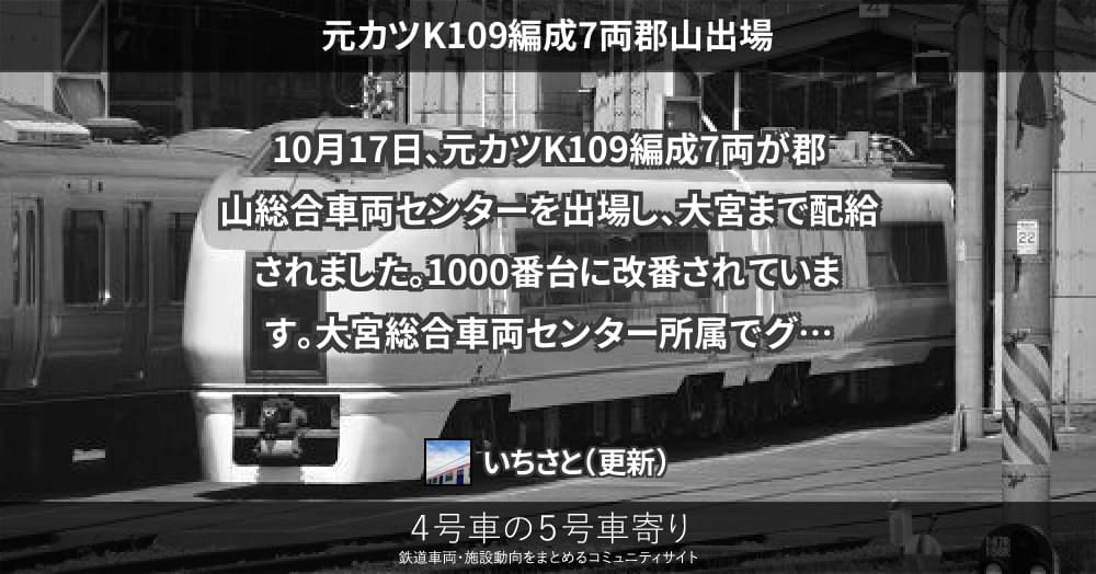 10月17日、元カツK109編成7両が郡山総合車両センターを出場し、大宮まで配給されました。1000番台に改番されています。
